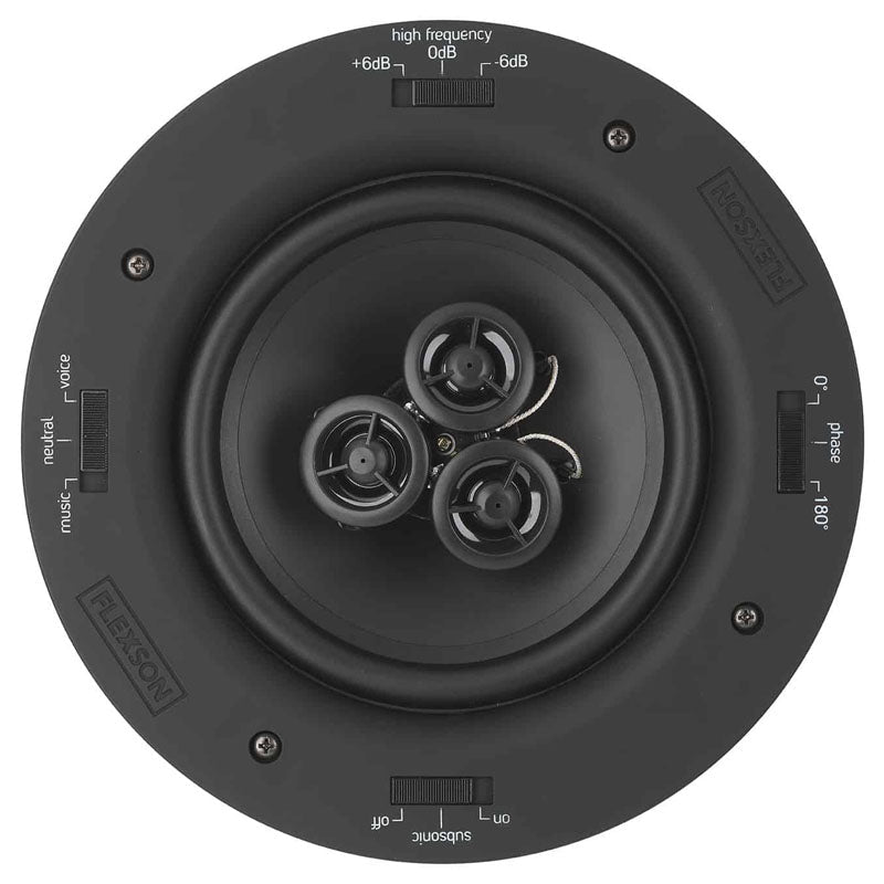 These Flexson low profile in-ceiling speakers work perfectly in combination with the Sonos Amp, or other streaming amplifiers. They feature triple high-frequency drivers for a wide sound distribution, 3 EQ settings: Normal / Music / Speech for optimal sound reproduction, and a bass setting for the control of the low frequency tones.